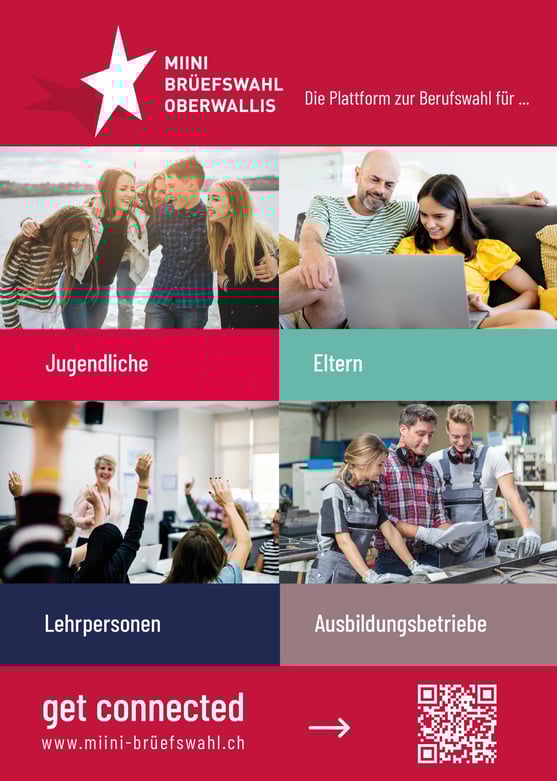 Informationen zur Schnupperlehre und Lehrstellensuche, Wissenswertes über Mittelschulen, Tipps für Eltern, Anmeldung für ein Beratungsgespräch und vieles mehr finden Sie hier www.miini-bruefswahl.ch